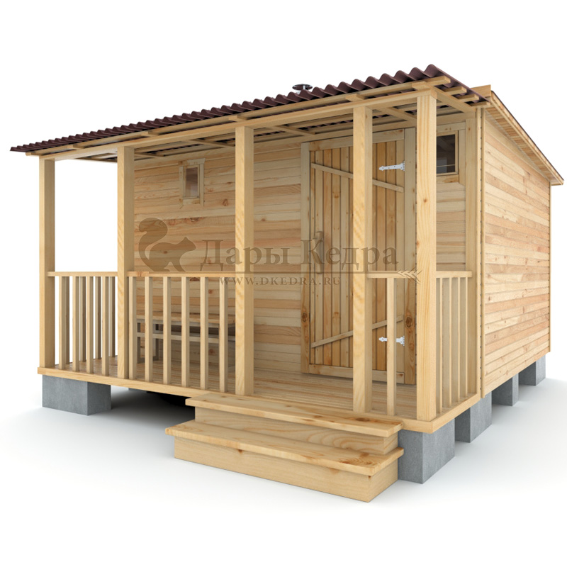 Каркасно-щитовая баня из кедра «Стандарт» с верандой