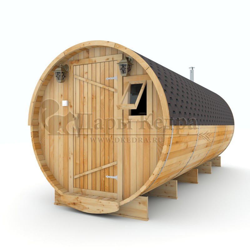 Баня-бочка представляет собой конструкцию в виде бочонка без углов. Такая форма считается оптимальной для равномерного распределения пара по всей внутренней поверхности парной. Таким образом, пар не скапливается в одном месте, а циркулирует по всему объему. Соответственно, круглая (квадратная, овальная) баня экономичная: топится быстро, требует дров мало.