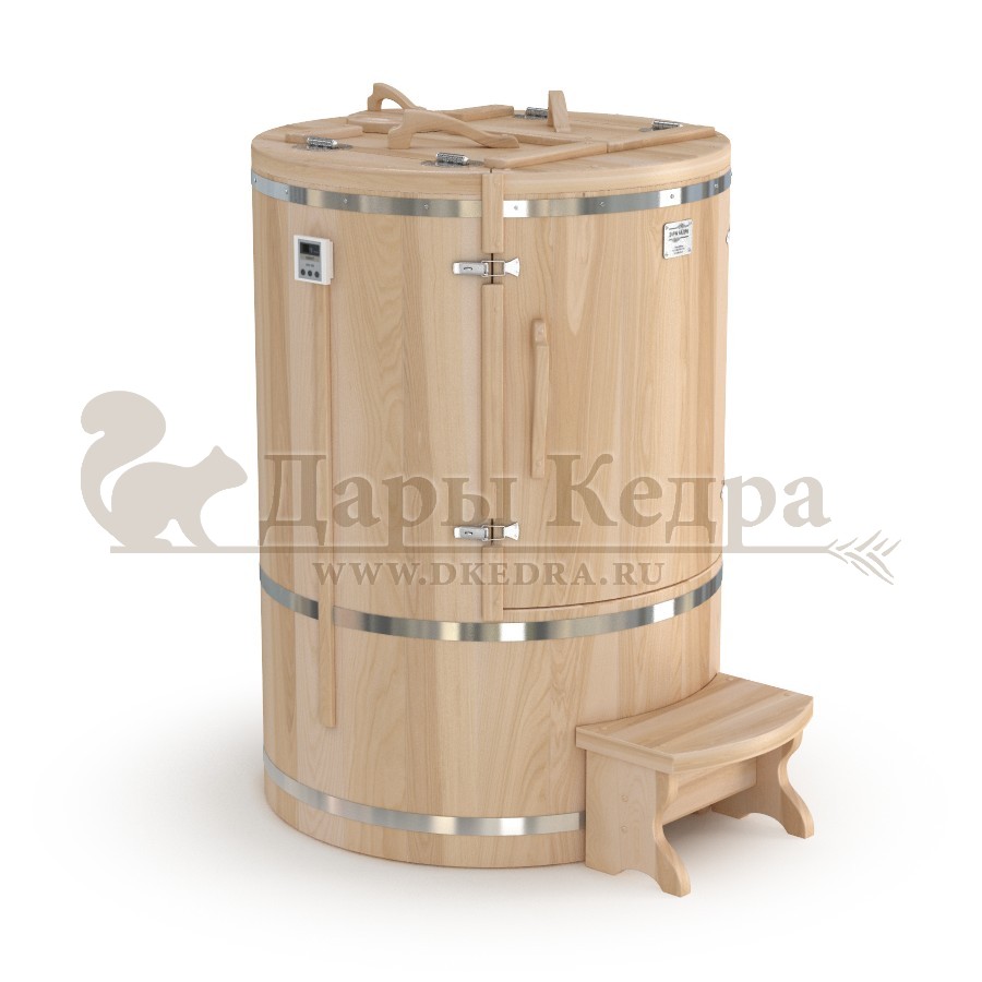 Кедровая бочка (фитобочка) круглая «Двухрежимная Профессиональная» Более продвинутая модель кедровой бочки (фитобочки). Компактное и в тоже время универсальное решение, совмещает в себе фитобочку и инфракрасную сауну. Благодаря толстым стенкам, данная модель отлично подойдет для частого домашнего или коммерческого использования. Пульт управления инфракрасной сауной и парогенератор премиум класса для кедровой бочки (фитобочки) идёт в комплекте, ничего дополнительно приобретать не нужно. Благодаря диаметру 900 мм, в этой бочке будет комфортно даже крупным людям. Купить кедровую бочку (фитобочку) круглой формы двухрежимную профессиональную Вы можете у нас на прямую по цене производителя.