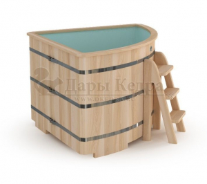 Это треугольная емкость для воды с пластиковой чашей. Она предназначена для отдыха и охлаждения тела после банных процедур. Купель устанавливается в угол помещения, что идеально для не больших пространств. Так же подходит для уличного использования. Угловая купель с пластиковой вставкой оснащена лавочками, приставной и внутренней лестницей из кедра.
