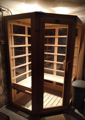 Сауна идеально вписалась в угол комнаты. Перед принятием душа всегда захожу погреться. Пользуюсь сауной полгода и могу сказать, что за это время ни разу не болела ОРВИ, совпадение или закономерность, но тем не менее факт остается фактом!
