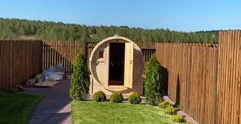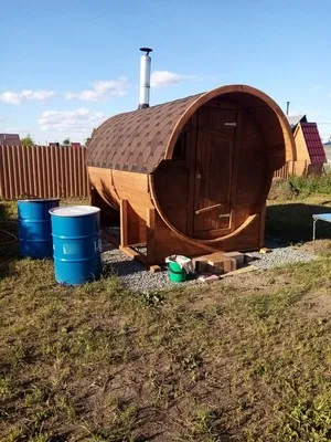 Вот такую баню-бочку 3 м заказывал в конце августа, через месяц ее изготовили, доставили в срок. Больше всего меня порадовало то, что баня реально готова к парению через полчаса примерно, фантастическая скорость прогрева! Баня очень комфортная и вместительная и дизайн оригинальный, на участке, как украшение стоит))Спасибо Дарам Кедра за такую красоту!