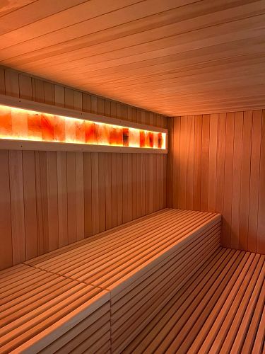 Для загородного центра здоровья заказывала такую сауну с соляной панелью. Изготовили не очень быстро, но меня предупредили, что декабрь-месяц тяжелый и могут быть задержки, итог превзошел ожидания: сауна отличная, практически без сучков, как я и просила. Аромат, конечно, потрясающий от сауны, когда она работает. В дальнейшем буду заказывать еще фитобочку и купель!